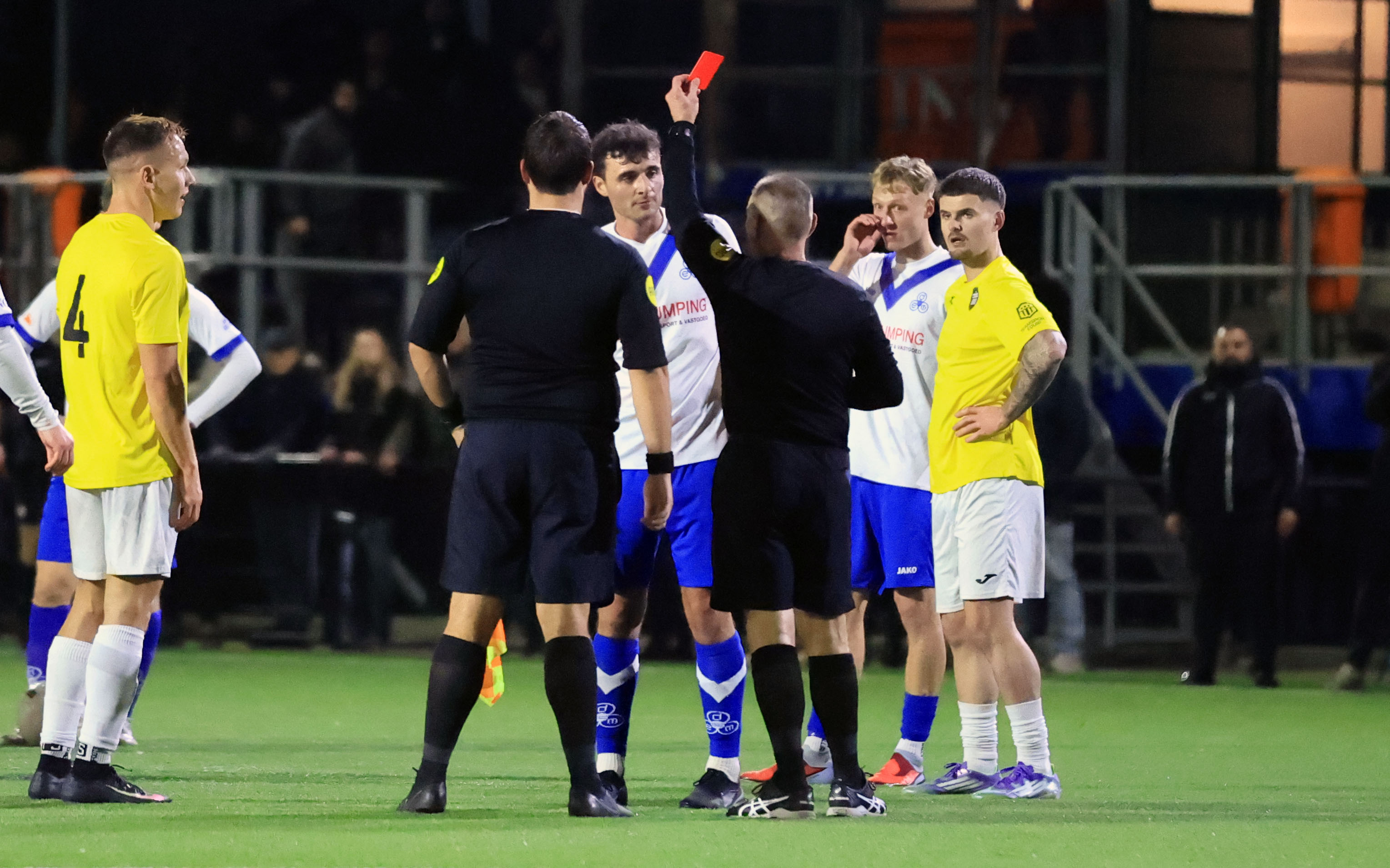 Uit het niets ontstond er een opstootje en maaide aanvoerder Brian Callego Portenge neer. De goed leidende scheidsrechter Jensch kon niet anders dan rood trekken.